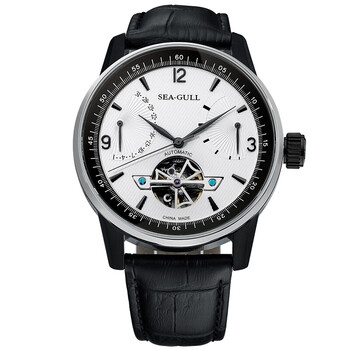 【送法国时尚ELLE表】海鸥(SeaGull)手表 飞轮系列自动机械男表 镂空日历势能皮带腕表 219.327白盘白圈黑带