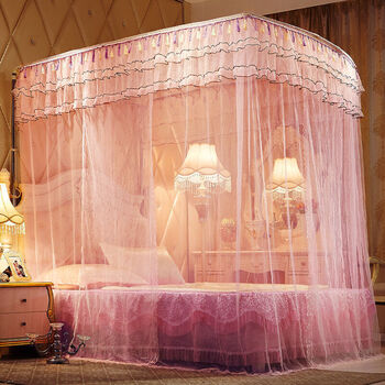 南极人NanJiren 伸缩蚊帐 1.5米床加粗不锈钢支架三开门宫廷落地钓鱼竿U型纹帐 玉色