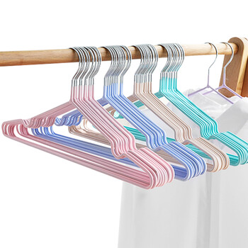 HOUYA好雅 衣架 浸胶晾衣架 10只装 不锈钢纳米级衣架 干湿两用 成人儿童防滑凹槽衣服撑子 颜色随机