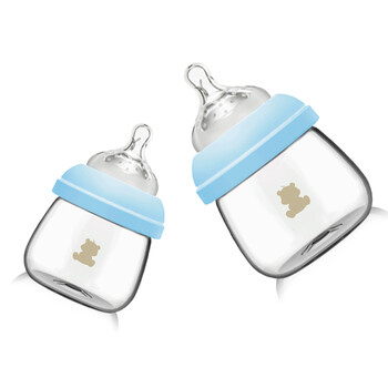 小白熊玻璃奶瓶 新生儿宽口径玻璃奶瓶 婴儿奶瓶 100ml 蓝色 09573