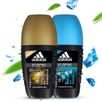 阿迪达斯 Adidas 男士走珠香体液套装(冰点50ml+征服50ml)止汗露 止汗滚珠 腋下护肤干爽