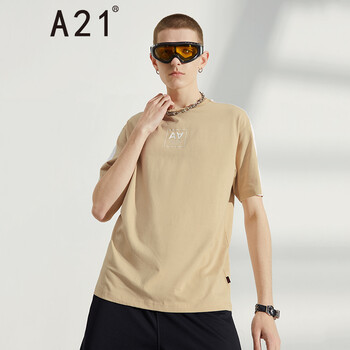 以纯线上品牌A21 2019夏季新品男装 短袖T恤 针织宽松圆领落肩短袖T恤衫 R492131016 卡其 175/88A/L