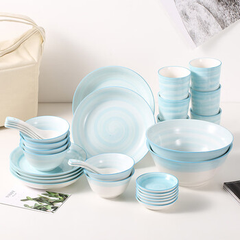 瓷时尚碗碟套装北欧简约星光灿烂创意餐具家用32头餐具套装(蓝色)礼盒装