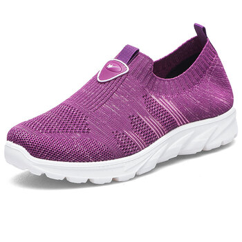 双星飞织一脚蹬老人轻便透气舒适软底休闲旅游运动跑步中老年健步妈妈女鞋 982059 紫色(女款) 39