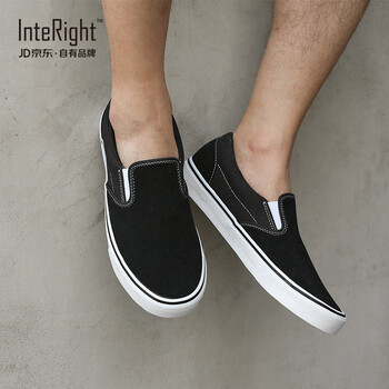 INTERIGHT 帆布鞋男 男士翻毛皮低帮帆布鞋休闲鞋 2019新品 黑色 42