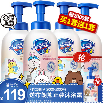 舒肤佳儿童沐浴露 健康萌友礼盒 泡泡沐浴露香草牛奶+柑橘柠檬500ML(男女通用 易冲洗 无添加 温和不刺激)