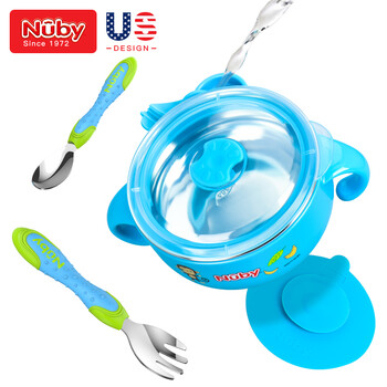 努比(Nuby)儿童餐具保温碗 新生儿宝宝不锈钢餐具套装婴儿辅食碗吸盘碗叉子勺子套装