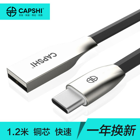 Capshi Type-C数据线 安卓手机充电器线 锌合金黑1.2米 华为P10/mate9/荣耀V8/麦芒5/三星S8/小米5S6乐视