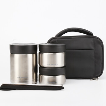 乐扣乐扣(LOCK&LOCK)米特不锈钢保温饭盒套装 保温餐盒便当盒 460ml+300ml+420ml+便当包 银色 LHC8031SLV