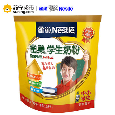 雀巢(Nestle)学生奶粉(调制乳粉)400g(内装16条)中小学生 袋装