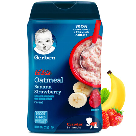 嘉宝Gerber婴幼儿辅食 草莓香蕉燕麦米粉米糊辅食 三段 8个月以上 227g 美国进口