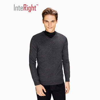 INTERIGHT50羊毛男士商务休闲V领羊毛衫 深灰 L码