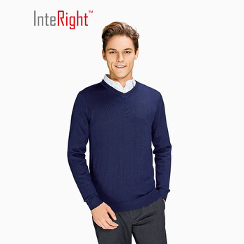 INTERIGHT50羊毛男士商务休闲V领羊毛衫 深蓝 M码