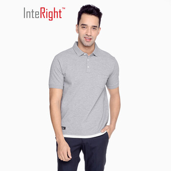 INTERIGHT全棉POLO衫男士潮流假两件短袖 灰色 L