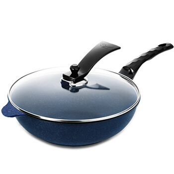 韩库(highcook) 32cm韩国进口蓝宝石系列炒锅不粘锅无烟锅 电磁炉炒锅(BZ037)