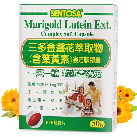 三多(SENTOSA)三多金盏花萃取物(含叶黄素)复方软胶囊 叶黄素眼睛营养补充 复合配方护眼 台湾进口 50粒/盒