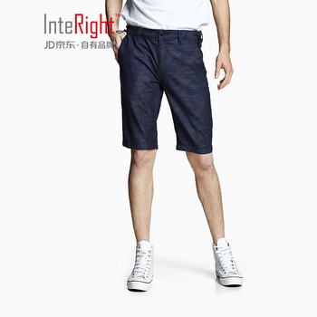 INTERIGHT 2019春季新品男暗纹迷彩弹力运动休闲牛仔短裤 深蓝色 32码