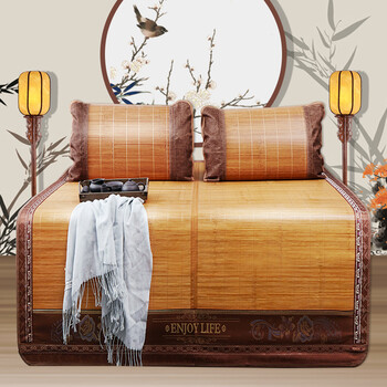 南极人(NanJiren)凉席家纺 席子夏天夏季凉席折叠加厚冰藤席凉席款三件套 1.8米床(1凉席+2枕套)