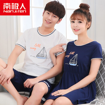 南极人睡衣男短袖纯棉女士家居服夏季全棉情侣睡衣套装NAS5X20111-8蓝白帆船L
