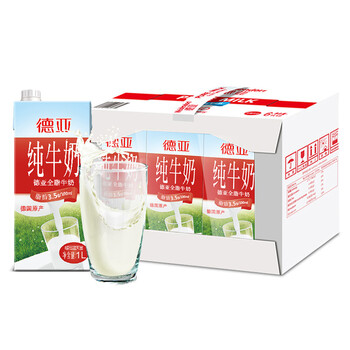德国进口牛奶 德亚(Weidendorf)全脂纯牛奶 早餐奶 1L*6盒 礼盒装
