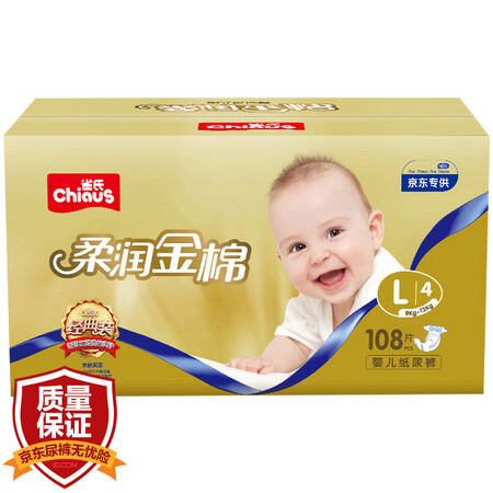 雀氏(Chiaus)柔润金棉 婴儿纸尿裤尿不湿大号L108片【9-13kg】
