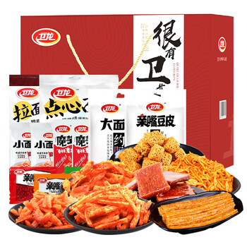 卫龙 休闲零食 网红儿时辣片礼包 大小面筋 豆皮魔芋爽亲嘴烧 拉面丸子点心面 很有卫道经典辣条礼盒1168g/盒