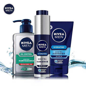 妮维雅(NIVEA)男士控油补水抗痘洁面套装(小蓝管精华50g+炭泥洗面奶150ml+多效洁面100g)护肤化妆品