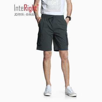 INTERIGHT 四面弹休闲工装裤男士运动短裤男夏休闲裤男速干跑步健身 军绿色 34码