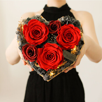 Para Ella桃心5朵红色永生花玫瑰花满天星彩灯款钻石礼盒鲜花速递七夕情人节鲜花礼物生日礼物送女生送女友