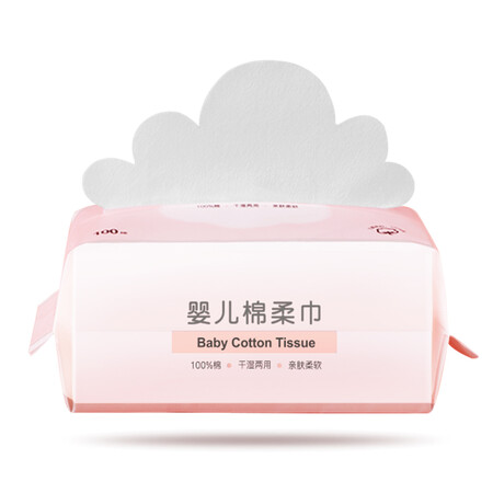 小白熊 婴儿棉柔巾 抽纸巾湿水可用 宝宝加厚干湿两用巾 新生儿非湿巾 20*12cm 100抽 09020