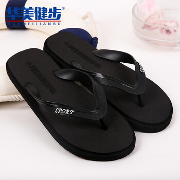 华美健步人字拖男拖鞋居家户外沙滩轻便百搭 流行简约款HM1806黑色M(41一42)码