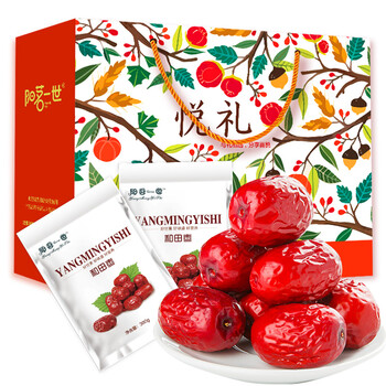 阳茗一世新疆和田大枣休闲零食年货红枣礼盒1800g(300g*6袋)