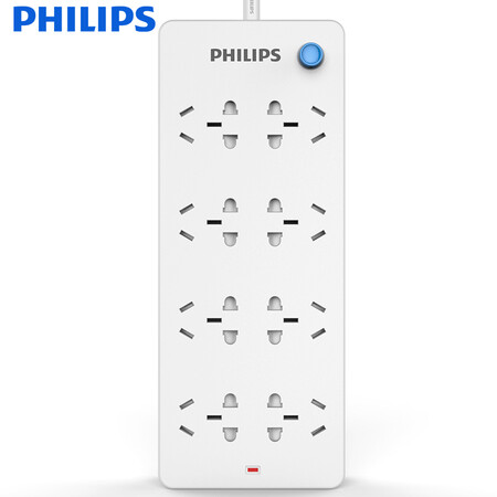 飞利浦(PHILIPS)新国标插座/插线板/插排/排插/接线板/拖线板 8位3米全长 保护门安全 防火阻燃