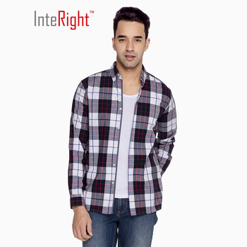 INTERIGHT衬衫男格子休闲棉衬衫长袖 红格 L 40