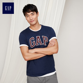 GAP旗舰店 男装 Logo徽标圆领上衣 639065 2019新款休闲短袖T恤 海军蓝 L