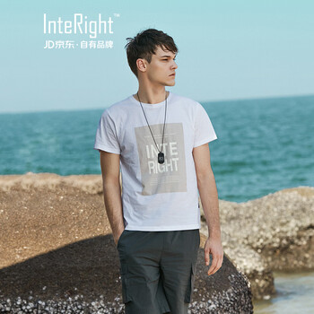 INTERIGHT 2019夏季新品男立体胶浆印花潮流时尚字母T恤 白色 XL码