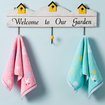 孚日洁玉纯棉毛巾 可爱颂小兔子刺绣亲肤吸水儿童毛巾2条装 25*50cm 蓝+粉