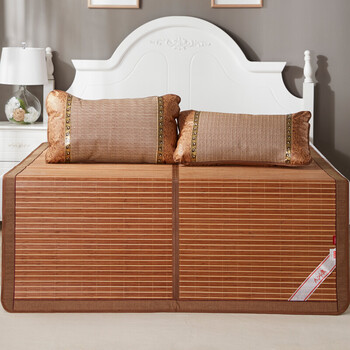 九洲鹿 凉席家纺 双人加大碳化双面竹席 镜面清凉水磨席子竹凉席两用折叠式 (不含枕席) 1.8米床