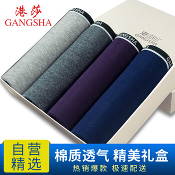 港莎男士内裤 4条装平角内裤男棉质中腰纯色棉四角内裤u凸短裤头 时尚礼盒装 L