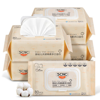 上儿贝贝(SCNC)婴幼儿天使棉柔手口湿巾加大特厚 80片*5包