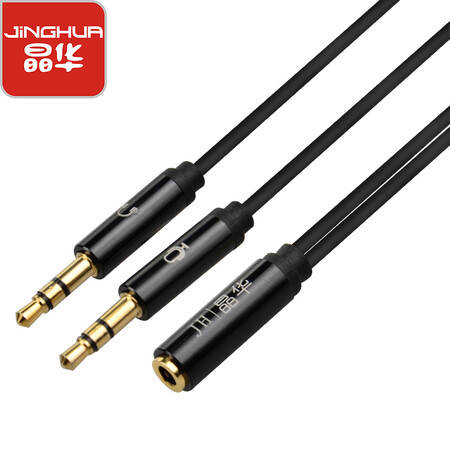 晶华(JH)音频线耳机麦克风二合一转接线台式机电脑3.5MM手机耳机音频并线器0.2米黑色 1353