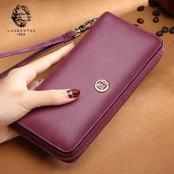 老人头(LAORENTOU)牛皮钱包女包长款大容量百搭手拿包卡包钱票夹时尚女士钱包JD203206J0ZY01L4R紫色