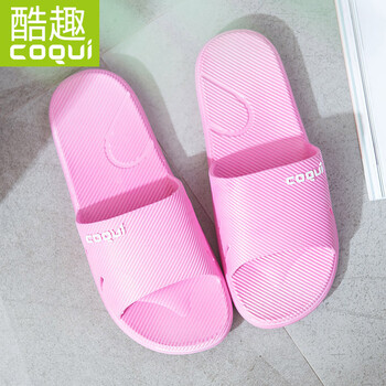 酷趣Coqui 情侣家居浴室居家简约休闲拖鞋软底防滑洗澡凉拖鞋女款 粉红35-36 CQ7915