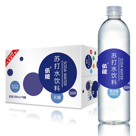 依能 加锌 苏打水 500ml*15瓶/箱 无糖 无汽 饮料