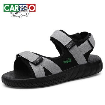 卡帝乐鳄鱼 CARTELO 时尚休闲透气一脚蹬防滑露趾便捷魔术贴沙滩凉鞋 KDL202 灰色 44