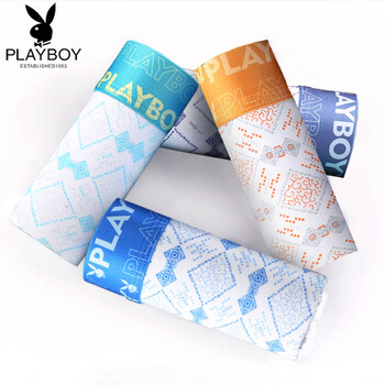 花花公子(PLAYBOY)冰丝内裤男平角裤四角中腰4条5290多色XXL