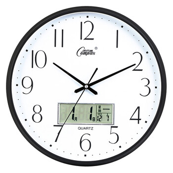 康巴丝(Compas)挂钟15英寸万年历创意静音客厅钟表日历简约时钟卧室挂表电子石英钟C3076Y黑白