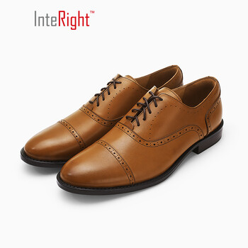 INTERIGHT 男士布洛克商务皮鞋 棕色 41