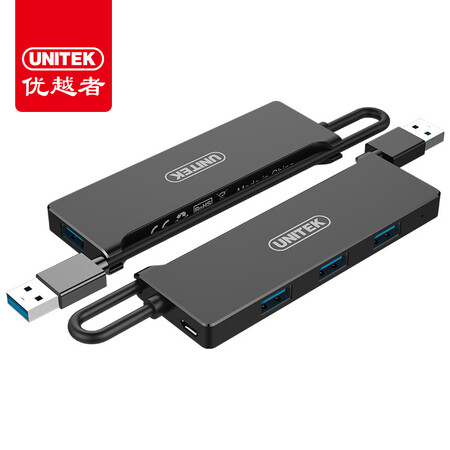 优越者(UNITEK)USB分线器3.0 高速扩展一拖四转换器0.2米 笔记本电脑usb多接口集线器收纳超薄形Y-3145BK