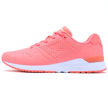 特步情侣运动鞋休闲鞋秋冬新款革面保暖轻便潮流时尚小黑鞋983418329109 粉红-女 35码